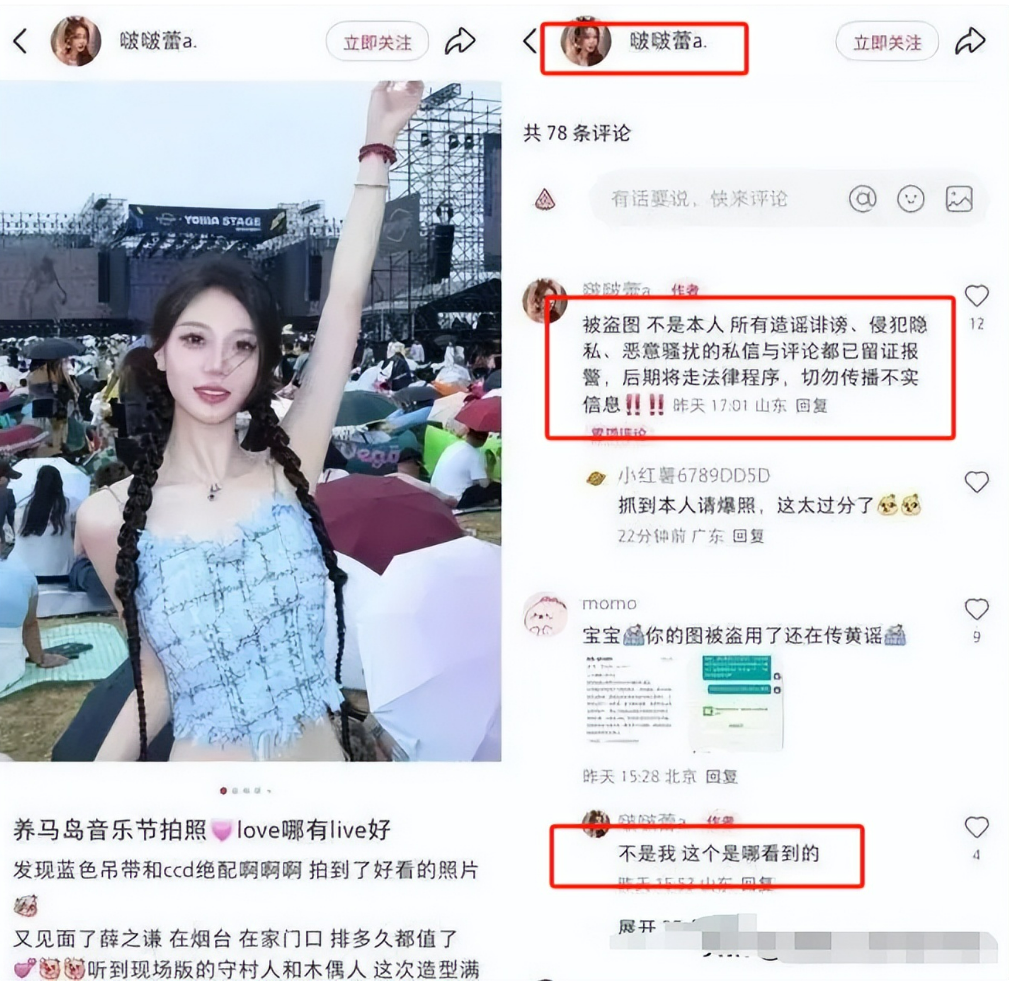 肖像权侵害:博主@啵啵蕾a. 照片被盗用后遭网暴,被迫报警自证