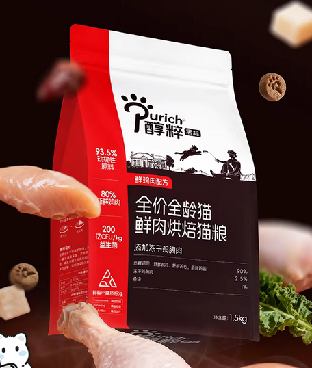 醇粹品牌主打"普惠优质喂养",主要走高性价比路线,旗下产品线全面,针对不同的猫咪有对应的配方侧重,致力于让每只猫咪都能得到孩子般的呵护。这款猫粮是旗下面向高端市场的黑标系列,主打100%全鲜肉添加,采用单一鸡肉配方,肉含量充足,测评2025年哪款猫粮最好最安全?营养全面丰富,蛋白质达到了48%,脂肪达到了18%,猫咪的不同营养需求都能满足。此外,这款猫粮还使用了2.5%冻干鸡肉成分,包裹在猫粮表面,整体的适口性突出。