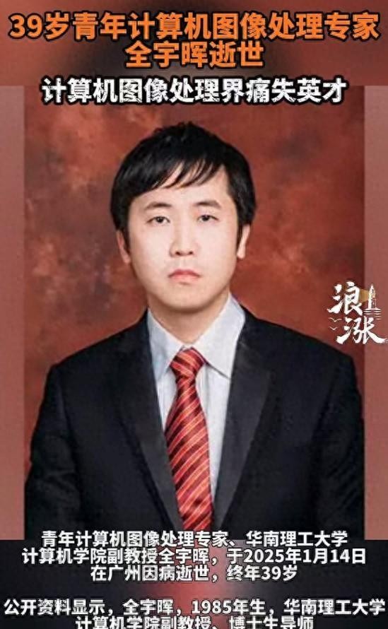 1月16日,全宇晖的讣告发出,全宇晖副教授已于1月14日在广州逝世,年仅39岁!