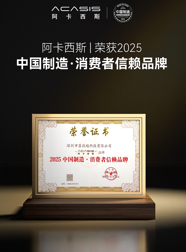 2025年12月26日,深圳 —— 喜讯传来!近日,由中国工业报社主办的“2025中国制造·消费者信赖品牌”申报公示工作火热推进中,深圳市菲德越科技有限公司旗下品牌“ACASIS阿卡西斯”凭借在数码存储与高速传输领域的卓越表现和深厚市场口碑,成功入选并光荣斩获“2025中国制造·消费者信赖品牌”殊荣,这份认可实至名归!