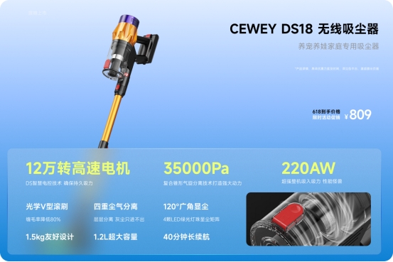而CEWEY品牌对细分市场——特别是养宠家庭清洁需求的长期专注与技术投入,直击用户核心痛点——推出了CEWEY DS18家用吸尘器!
