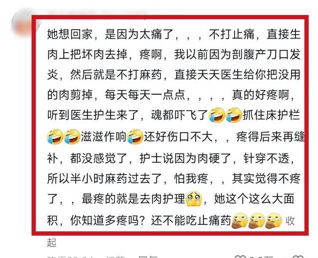 这位网友分析的比较到位,难怪这名母亲想回家,实在是太痛了啊: