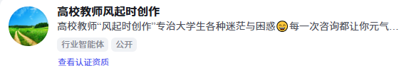 ‌3. 一键直达,嗨聊无阻!‌ 文心智能体平台官网,或文心APP的“社区发现”板块,搜索“高校教师风起时创作”,马上开聊!‌