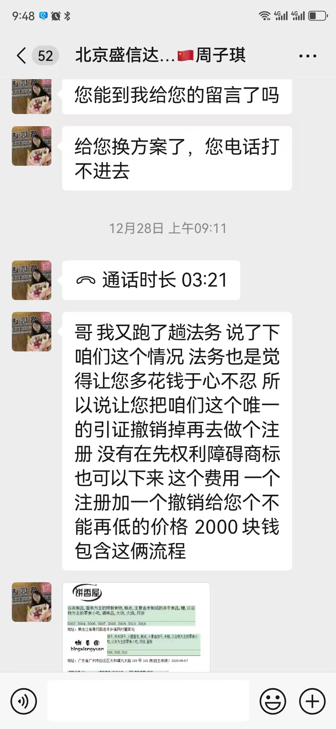 复审失败后,他们不仅没有认真反思自己作为专业代理机构应该承担的责任,反而把话题转移,一直催我继续交2000元去撤销引证商标。这种做法让我彻底看清了:盛信达对他们自己的客户根本不负责任。