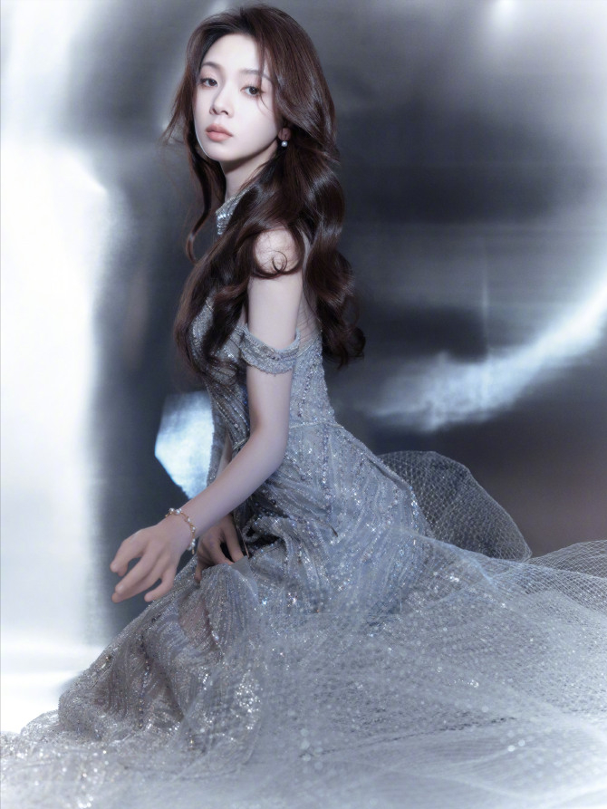 整组写真中最震撼人心的画面,莫过于她身着银色长裙,席地而坐,裙摆铺展如流光溢彩的银河。礼服上镶嵌的亮片在光影交错间折射出璀璨光辉,仿佛她本人就是夜空中最璀璨的那颗星。粉丝们纷纷表示:“这简直就是神话中的仙子降临人间!”