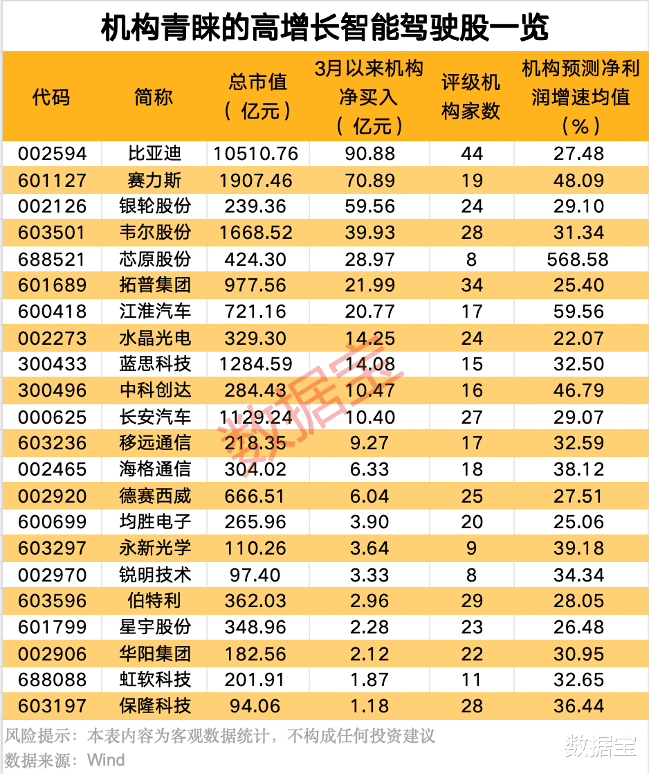 据证券时报·数据宝统计,根据5家以上机构一致预测,2025年—2026年净利润增速均有望超20%的概念股有24只,包含比亚迪、赛力斯、韦尔股份、蓝思科技、长安汽车5家千亿巨头。