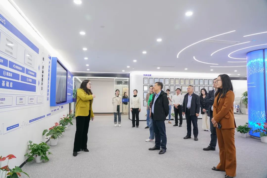 陈宇飞代表融象集团对娄万总一行的来访表示热烈欢迎,吴烨维在展厅介绍了公司发展历程、核心能力、业务矩阵、主要荣誉和生态合作情况。吴茹菲介绍了融象数科的发展现状、主营业务、发展成果等内容,就产业研究与园区运营、数字科技、数据要素三项核心业务,详细介绍了产品、服务、案例和建设成效。解决方案专家祝阳浩演示了区域经济大脑、产业大脑、智慧招商平台等数字科技产品,娄万总细致询问了解产品的功能、数据来源、使用情况和效果反馈等,与参会人员进行了充分地交流。