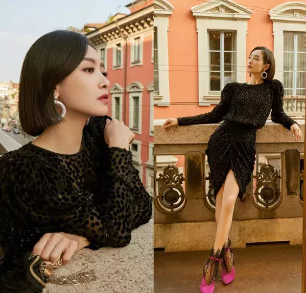 宋茜的穿衣风格一直都挺多变的,前几天她Po出的一组照片中,身穿伊莎贝尔·玛兰 (Isabel Marant) 黑色连衣裙十分霸气。裙子高开衩的设计带点小性感,佩以BlingBling的圆形耳饰,气场超强。但最抓人眼球的还要数宋茜脚上的玫红色蕾丝高跟鞋,打破了一身黑的沉闷,为整体造型提亮了不少。