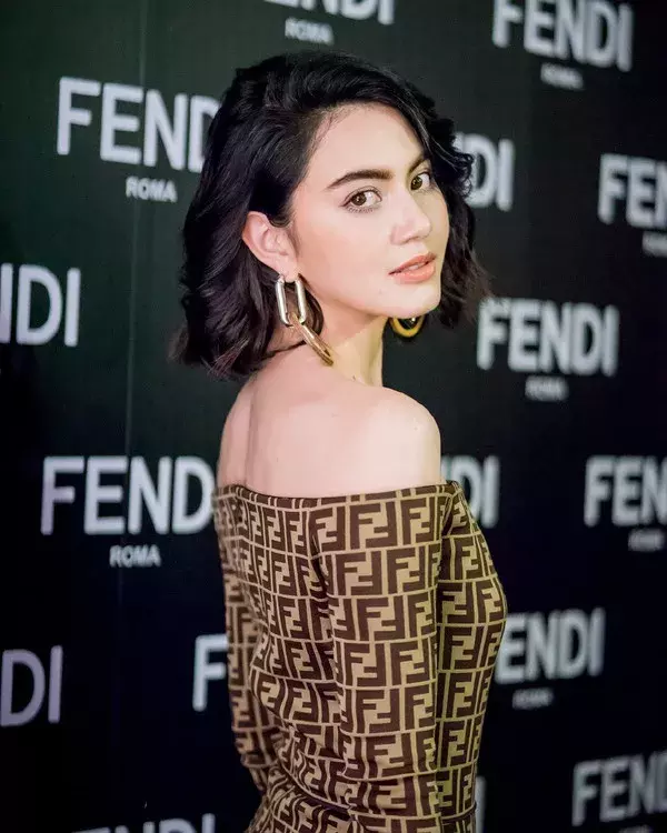 Mai走秀时是满满的御姐范儿,参加品牌活动时又是另外一种感觉。俏丽短发搭配夸张金属耳饰,身穿一袭芬迪 (Fendi) 一字肩长裙,举手投足间尽显精致优雅的大女人味道。