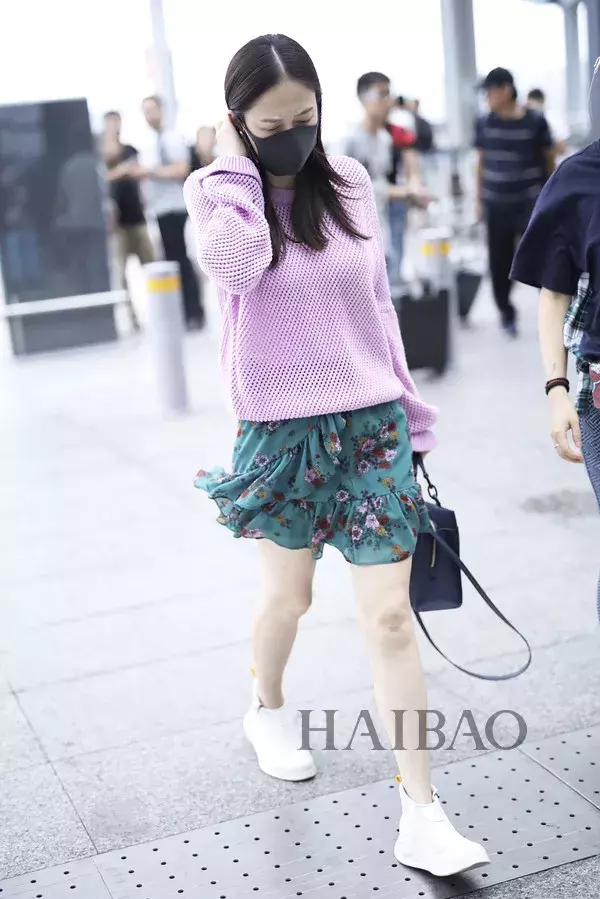 但陈乔恩却给我们了一个错误的示范,绿色印花半裙配上紫色针织衫,特别土味,不知道陈乔恩是不是着急赶飞机穿错了衣?
