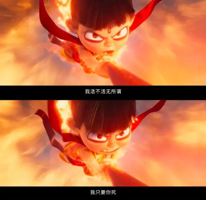但是作为影片所要传递的价值观与主题思想来说,这样的台词就显得有点偏激,让人觉得与第一部中哪吒阳光正义的形象有点违和,观众对于电影的好感度也有所打折。