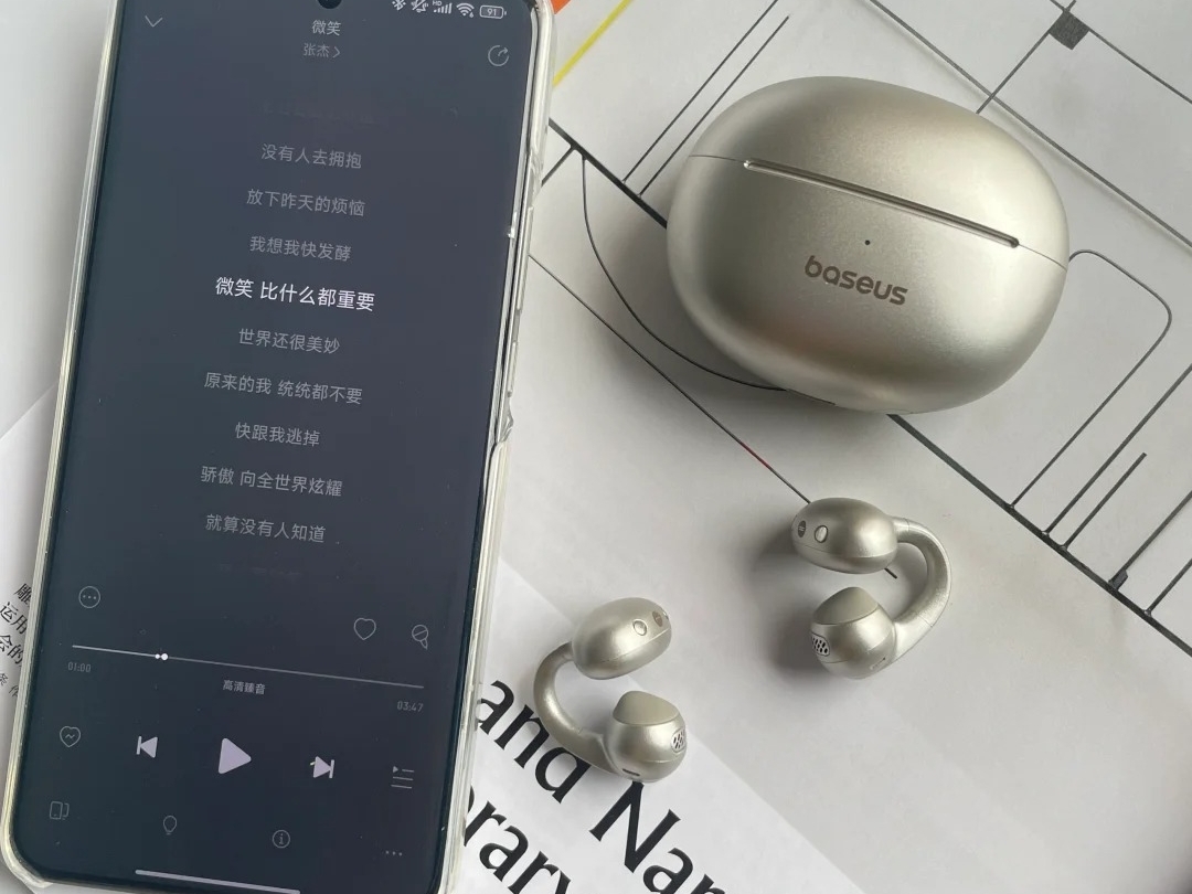 倍思这款耳机用下来整体体验很顺畅,尤其是佩戴感受特别突出。单只 5.2 克的重量,戴着完全没什么感觉,耳夹的云朵气囊设计触感柔软,不会磨耳也不会勒耳,就算长时间佩戴,耳背也不会有不适。而且稳定性很好,日常走路、轻微运动都不会轻易滑落,不用频繁调整。