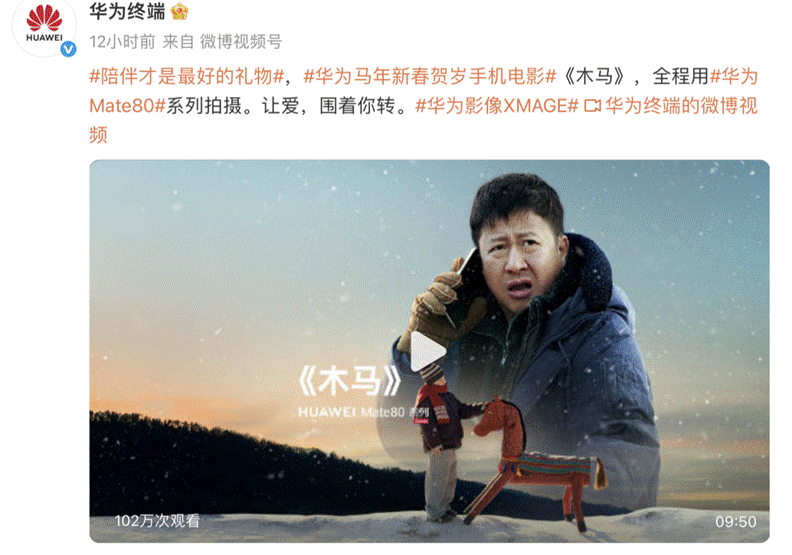 从金鸡开幕短片《奔赴光影》到贺岁短片《木马》,华为Mate 80系列正重新诠释“旗舰影像”的意义——它以行业领先的技术,悄然降低专业叙事的门槛,让电影级的表达融入普通人的日常,让手机真正成为记录生活、传递情感的媒介。在这个春节,当烟花升起、家人围坐时,或许我们需要的并非更复杂的设备,而是一份愿意举起手机、认真凝视与记录的心意。