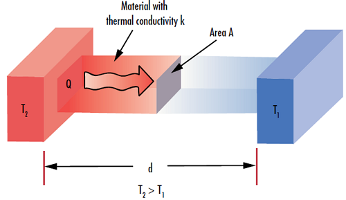 图3: 材料的导热系数 (k) 决定其通过给定厚度 (d) 传递热量的能力 (Q)