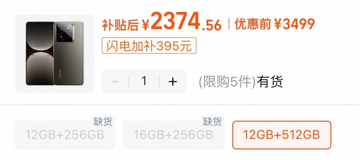 参考价格:某宝一加官旗店,百补+国补后 12GB+256GB 2311 元起。