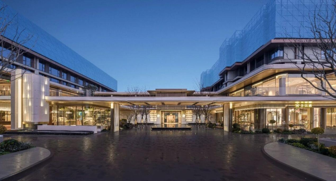 审美层面,比如去年11月交付的天青臻境,其建筑设计一方面以宋韵飞檐为经典符号,融入香槟格栅、中式回纹等细节,惯用多层次的线条强调建筑的俊朗与黄金比例感;另一方面又以高窗墙比的立面和当代材质的运用,照应稀缺湖山。