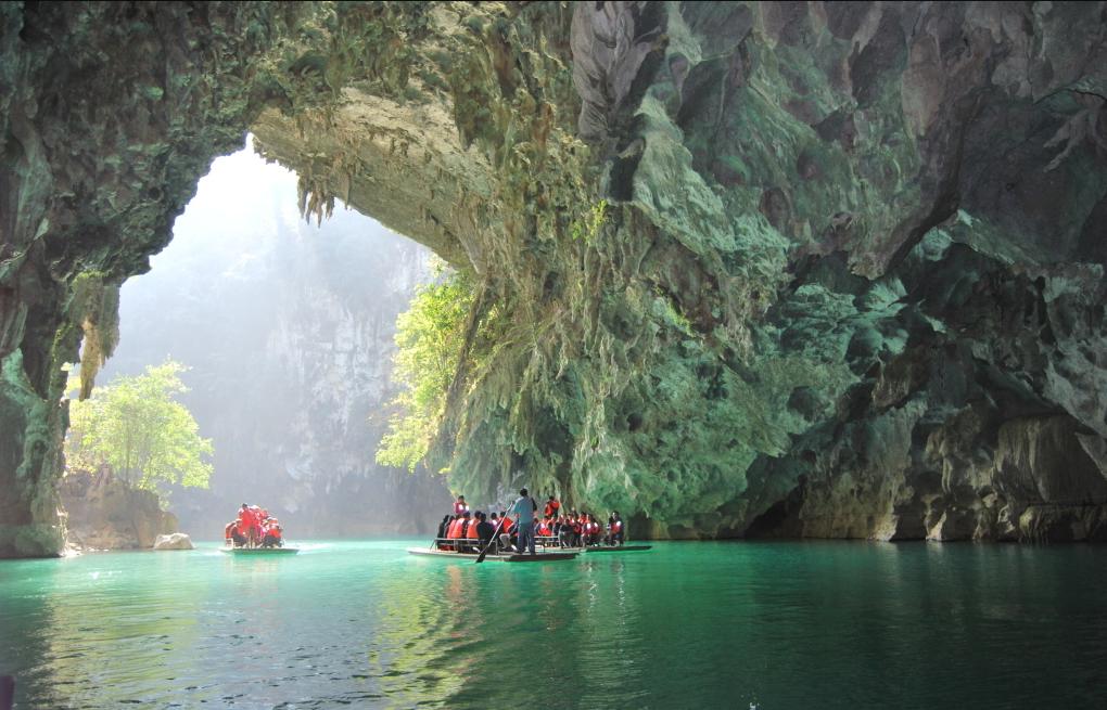🌊【凤山三门海景区】:乘船穿越天坑,探寻神秘溶洞奇观!河池市凤山县的三门海景区,山中有海,海上有门。游客可以乘船穿越天坑,赏天窗奇观,探寻神秘溶洞。这里的每一处风景都充满了神秘与惊喜,等待着你的探索与发现。