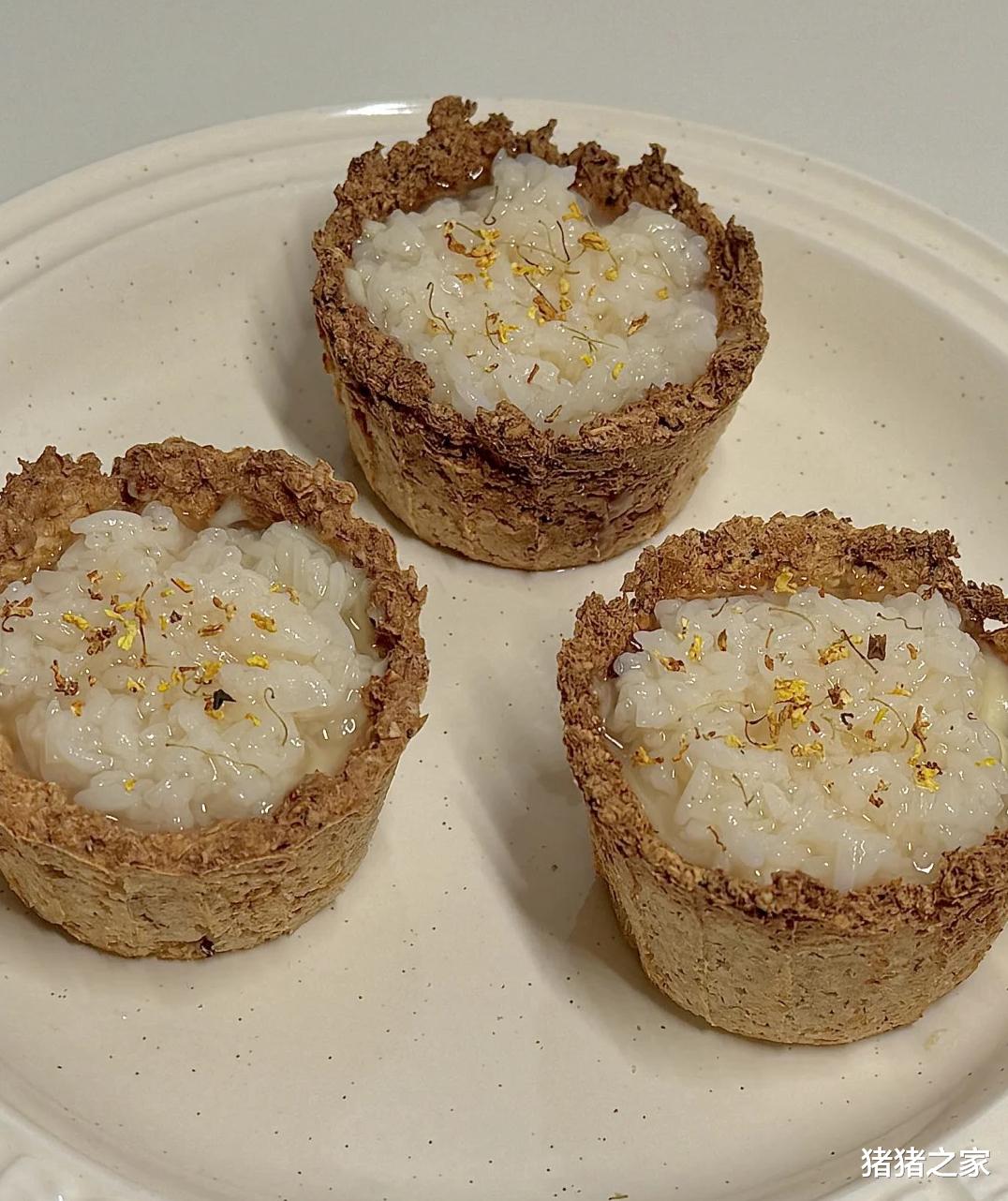 冷藏后的豆乳酱会变成布丁状态,Q弹软嫩,加上清甜的桂花和酒酿,还有脆脆的燕麦外壳,真的是超级好吃啊!而且,这款甜品还是0油0糖的,完全不用担心会长胖哦!