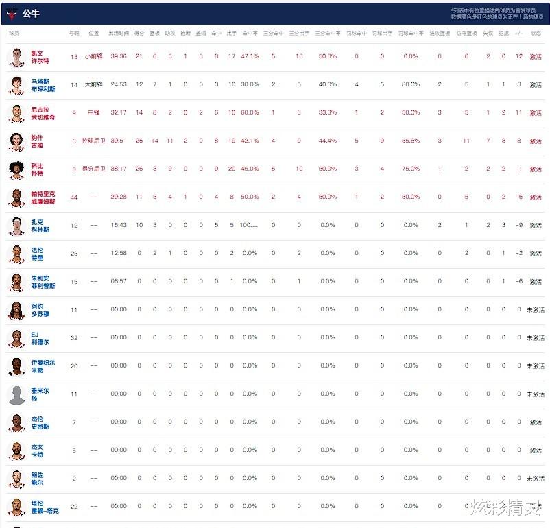 公牛首发: 科比-怀特,约什-吉迪,赫尔特,武切维奇,布泽利斯