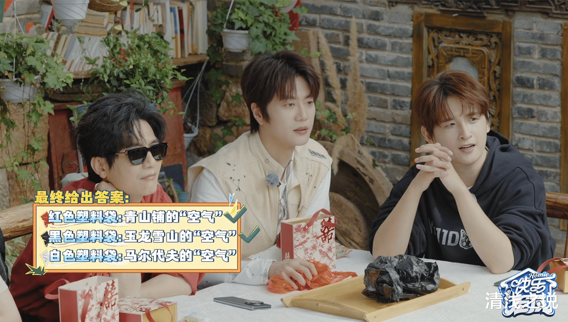 比如在第一个小游戏猜空气中,节目组拿出三个塑料袋,让老北北打开闻闻,猜测袋里的空气到底是来自马尔代夫的,还是青山铺,还是玉龙雪山?当苏醒猜测完白色袋子的空气是来自马尔代夫后,陆虎紧接着猜出红色袋子装的是青山铺的“空气”袋。尽管陆虎在猜测过程中曾动摇过,但陆虎最后还是相信最初的感觉,这份坚持让他答对了题。