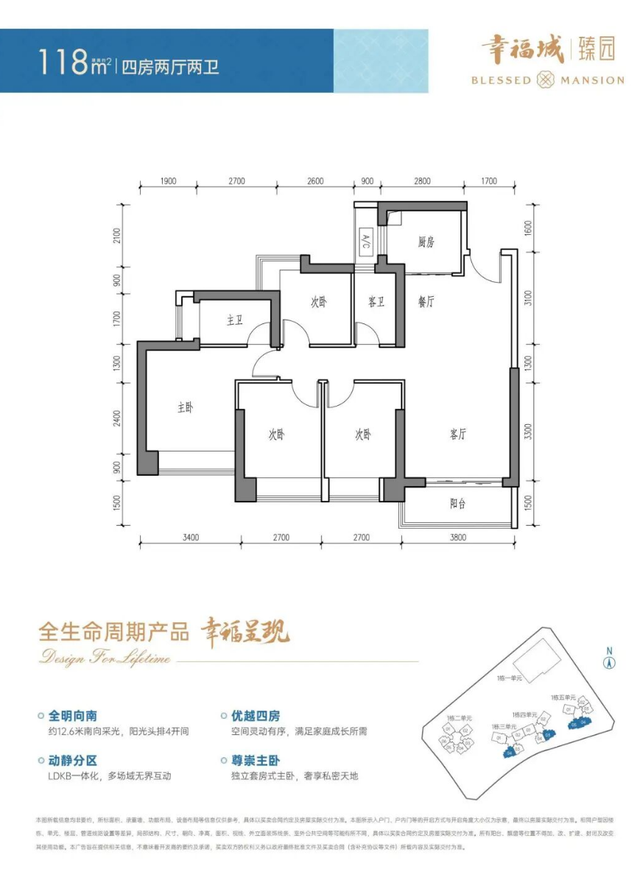 建面约118㎡ 四房两厅两卫(竖厅):经典竖厅布局,4开间朝南,通风采光极优。无论是二胎家庭还是三代同堂,都能让每个成员平等享受阳光与清风。