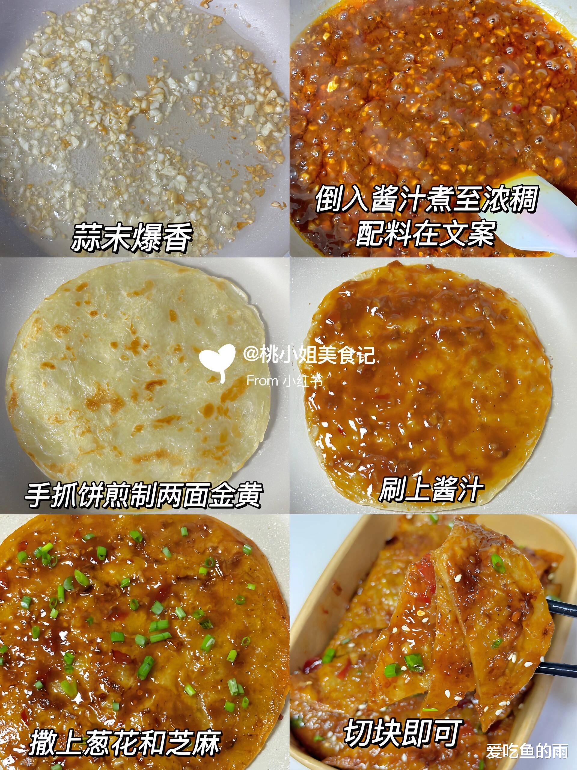 这酱香饼的妙,首先在酱。阿姨的酱是secret weapon:豆瓣酱、甜面酱、蒜蓉辣酱按比例混着,加少许糖和五香粉,小火慢熬半小时,直到酱变得浓稠发亮。她总说酱要熬到能挂勺,这样刷在饼上才不会流得满手都是。饼皮更讲究——中筋面粉加温水揉成三光面团(手光、面光、盆光),醒半小时后擀成薄皮,抹层油酥卷起来,再擀成圆饼。油酥是关键,面粉加热油混成稀糊,这样煎出来的饼才会层层起酥,咬开像千层蛋糕似的。我跟阿姨学过一次,揉面时总粘手,她笑着拍我手背:丫头,面要揉到心里软,别急,慢慢来。煎饼更考验火候——平底锅烧热,刷层薄油,把饼皮铺进去,转小火慢慢煎,等底面结了金黄的壳,翻个面再刷酱、撒葱花。刚出锅的饼滋滋冒油,用刀切的时候能听见脆响,酱料挂在饼上,像给它穿了件红衣裳。咬一口,酥、软、香、辣全在嘴里炸开,连平时不爱吃葱的儿子都举着块饼喊:妈妈,这酱比上次的还香!