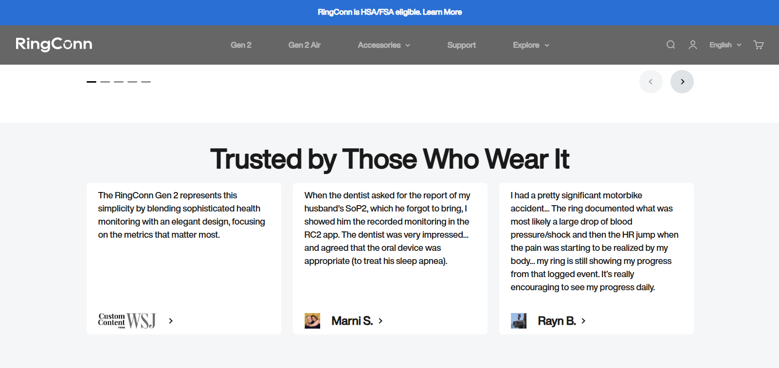 而当用户需要更深入了解产品技术细节、健康监测准确性等专业问题时,RingConn的独立站便承担起构建深度信任的使命。