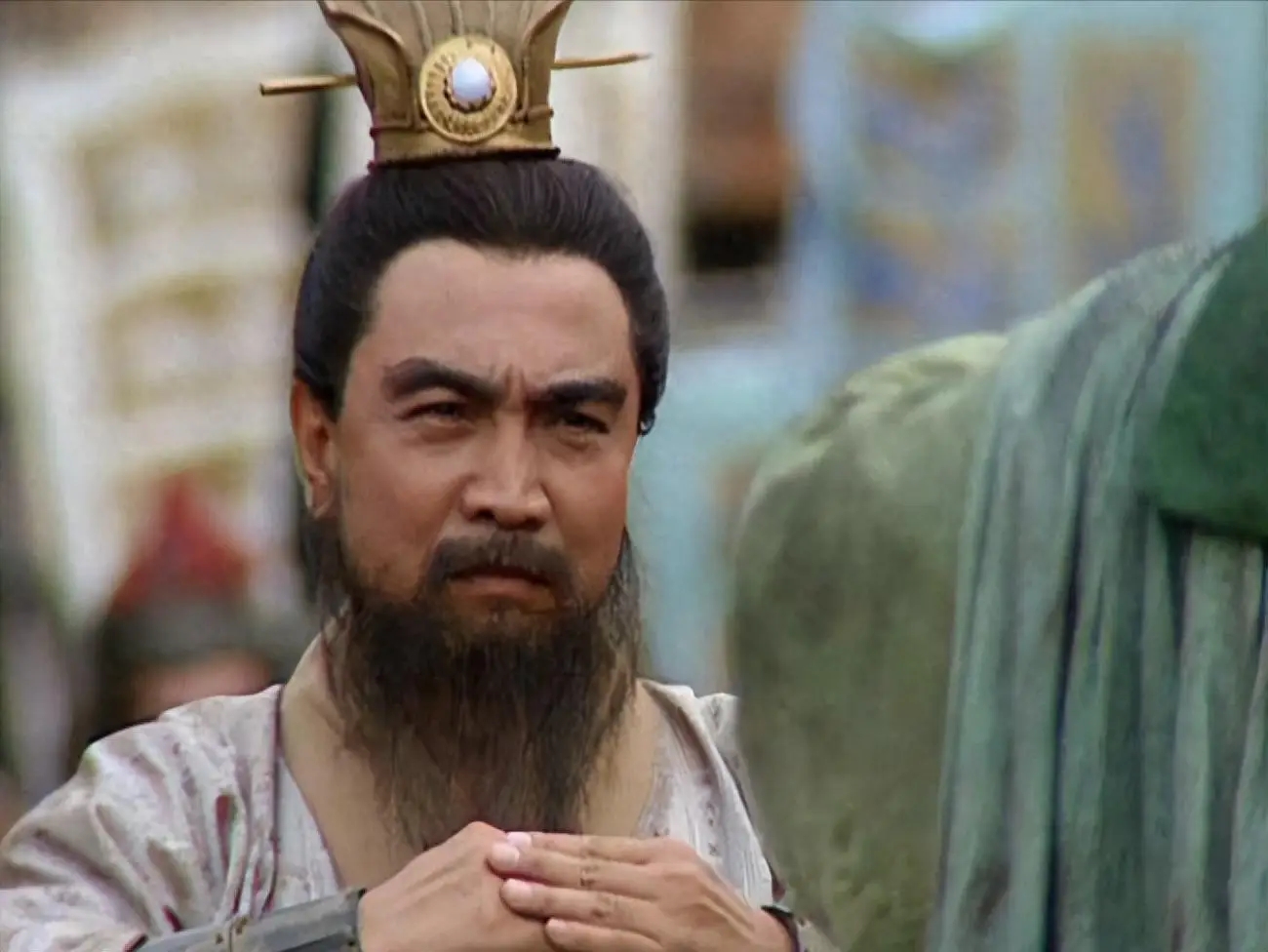 这个动作非常微妙。曹操是在试探——刘备跟吕布打过交道最多,吕布这个人到底能不能用?