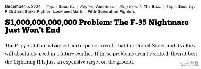 例如美国《国家利益》网站公开批评称,最新曝光文件透露了F-35的可靠性、可维护性和战备性方面的持续性严重问题。五角大楼此前要求,2019财年末,所有战斗机的任务能力率要达到80%,但F-35的所有型号在测试中能够达到的最好成绩仅为62%,远低于任何其他作战飞机——最新数据显示,F-35的妥善率甚至下降到了50%,也就是说实际有一半的飞机其实都无法出动。