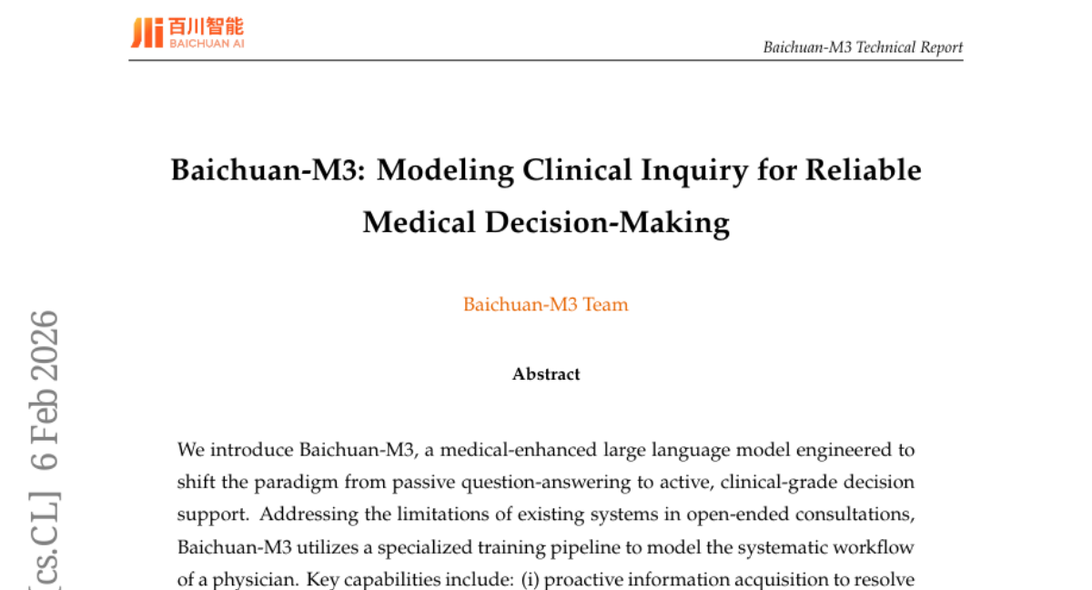这项由百川智能公司研发的Baichuan-M3医疗大模型研究于2025年2月发表在arXiv预印本平台上,编号为arXiv:2602.06570v1。有兴趣深入了解的读者可以通过该论文编号查询完整研究报告。