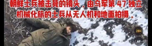 朝鲜士兵被击毙的瞬间,由乌克兰军队第47独立机械化旅的士兵通过无人机和地面摄像头捕捉到。