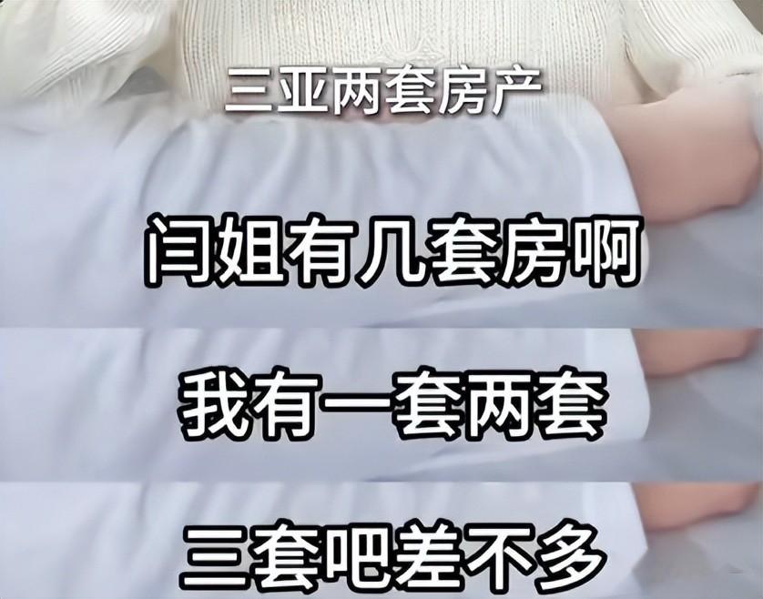 那些曾经不经意间晒出的生活细节,此刻被一一翻出来对照,北京的大平层,三亚的两套海景房,冬天一冷就能"候鸟式"迁徙。