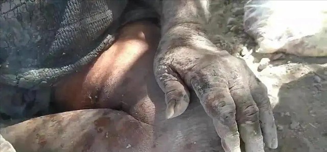 只因94岁的他68年没有洗过澡,身上的污垢凝成一层坚硬的“盔甲”。