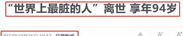 2.红星新闻《“世界上最脏的人”离世 享年94岁》2022-10-26