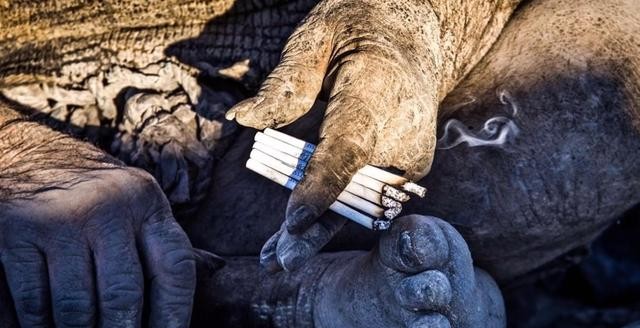 除此之外,他以腐烂的豪猪肉为食,喝地上土坑里堆积的脏水,点燃动物粪便当烟吸。