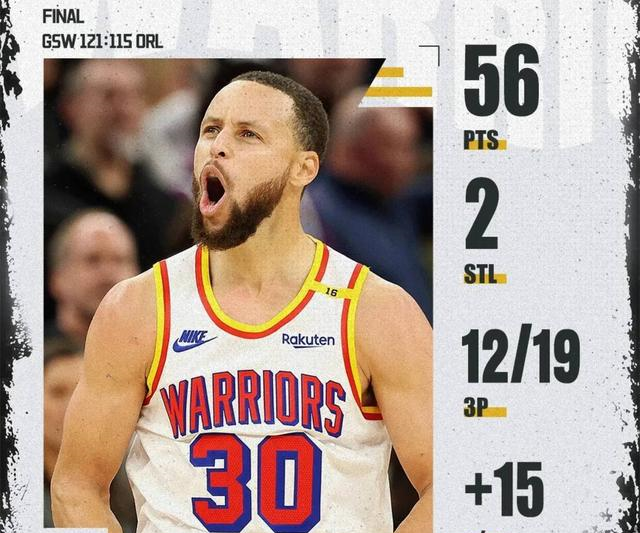 本场比赛,库里手感火热,尤其在第三节单节砍下22分,带领球队实现大逆转。他全场仅出战34分钟,投篮25中16,三分19中12,罚球12中12,高效砍下56分4篮板3助攻2抢断,正负值+15,堪称球队的灵魂人物。