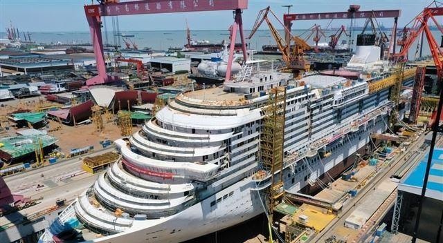 如今,外高桥造船正在建造第二艘大型邮轮“爱达·花城号”,并稳步向2025年整船贯通的目标迈进。