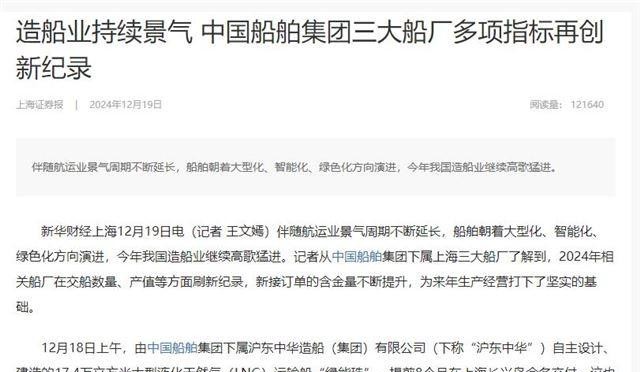 中国造船业不仅延续了快速发展的态势,还在多个领域实现了历史性突破。