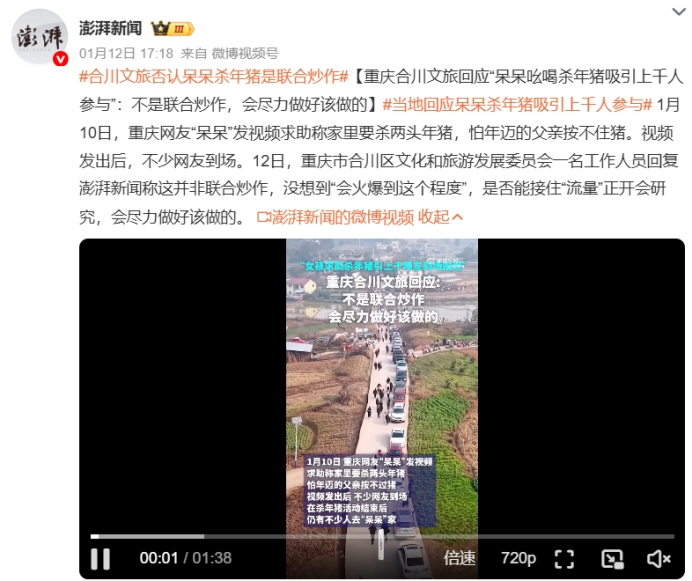 面对这突如其来的“泼天的富贵”,合川文旅部门工作人员坦言:“呆呆是懵的,我们也是懵的。” 他们带来的增援年猪,以及迅速设置的五个分会场,试图接住这波汹涌而来的流量。