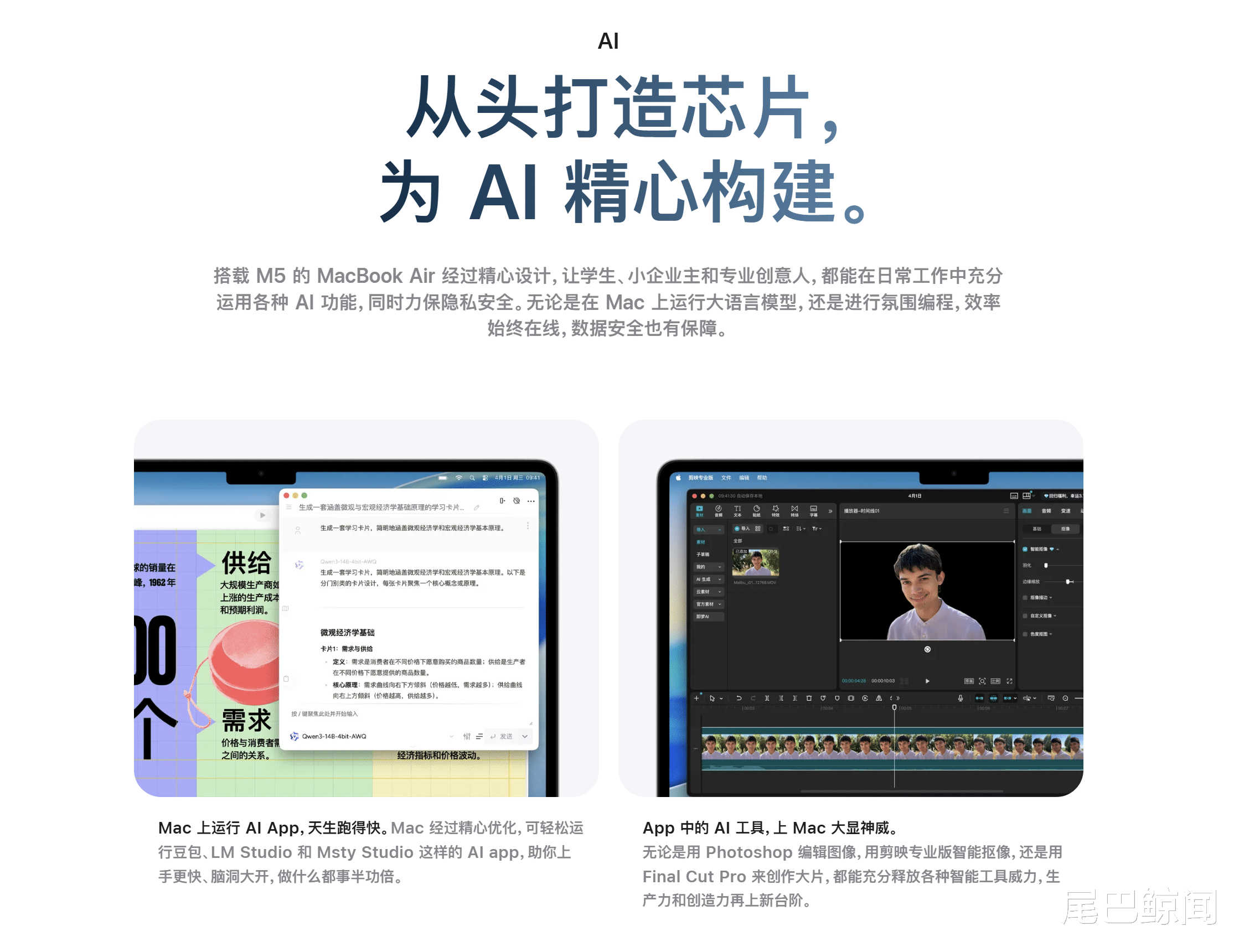 在核心规格上,M5芯片为MacBook Air提供了10核CPU和最高10核GPU的选项,使其在处理日常AI任务(如在Msty Studio中运行本地模型)时也能游刃有余 。对于学生党或轻办公人群而言,这一代的Air不再是简单的“换芯”,而是真正补齐了存储短板后的均衡之选。
