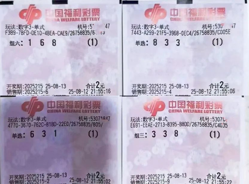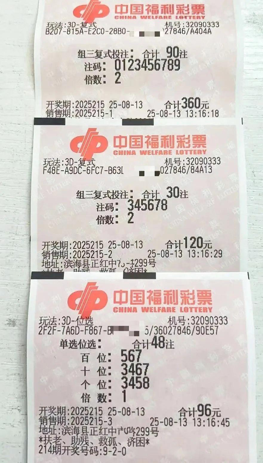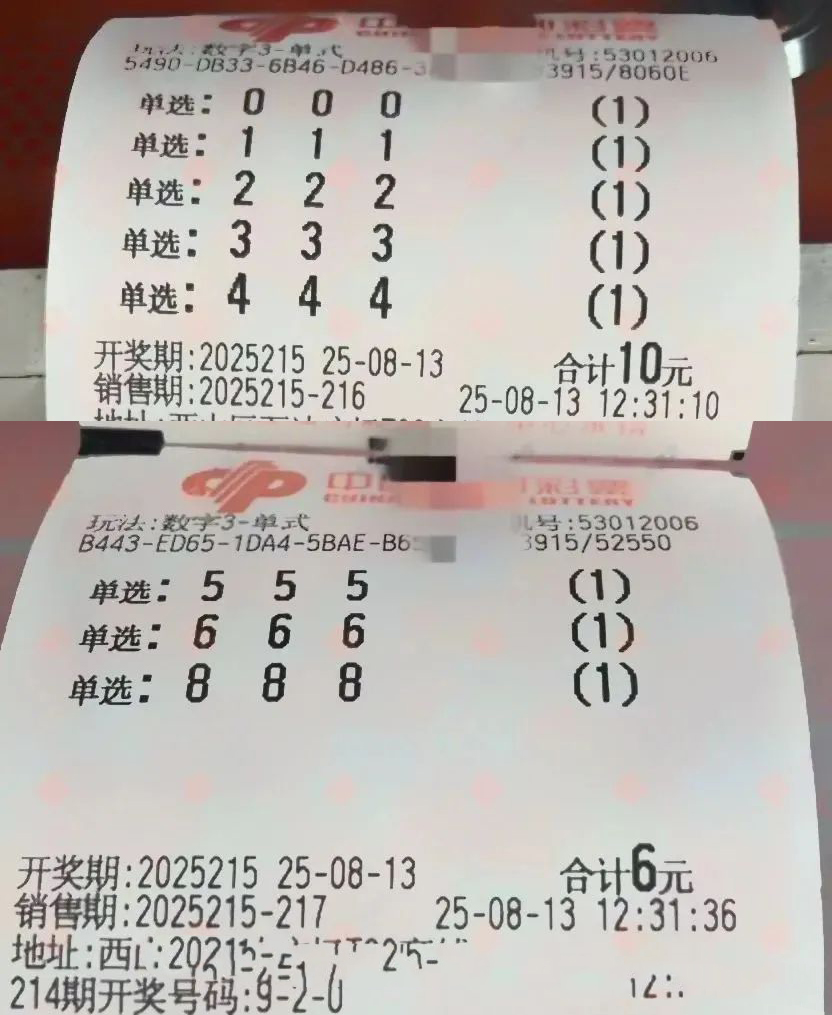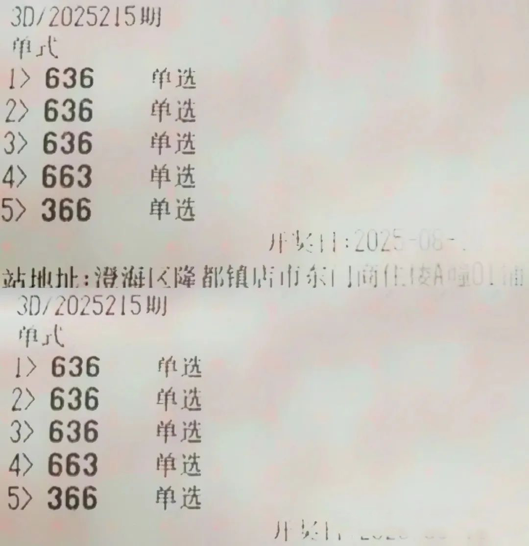 接下来,就让我们一同欣赏本期福彩 3D 第 2025215 期的精彩实单晒票。