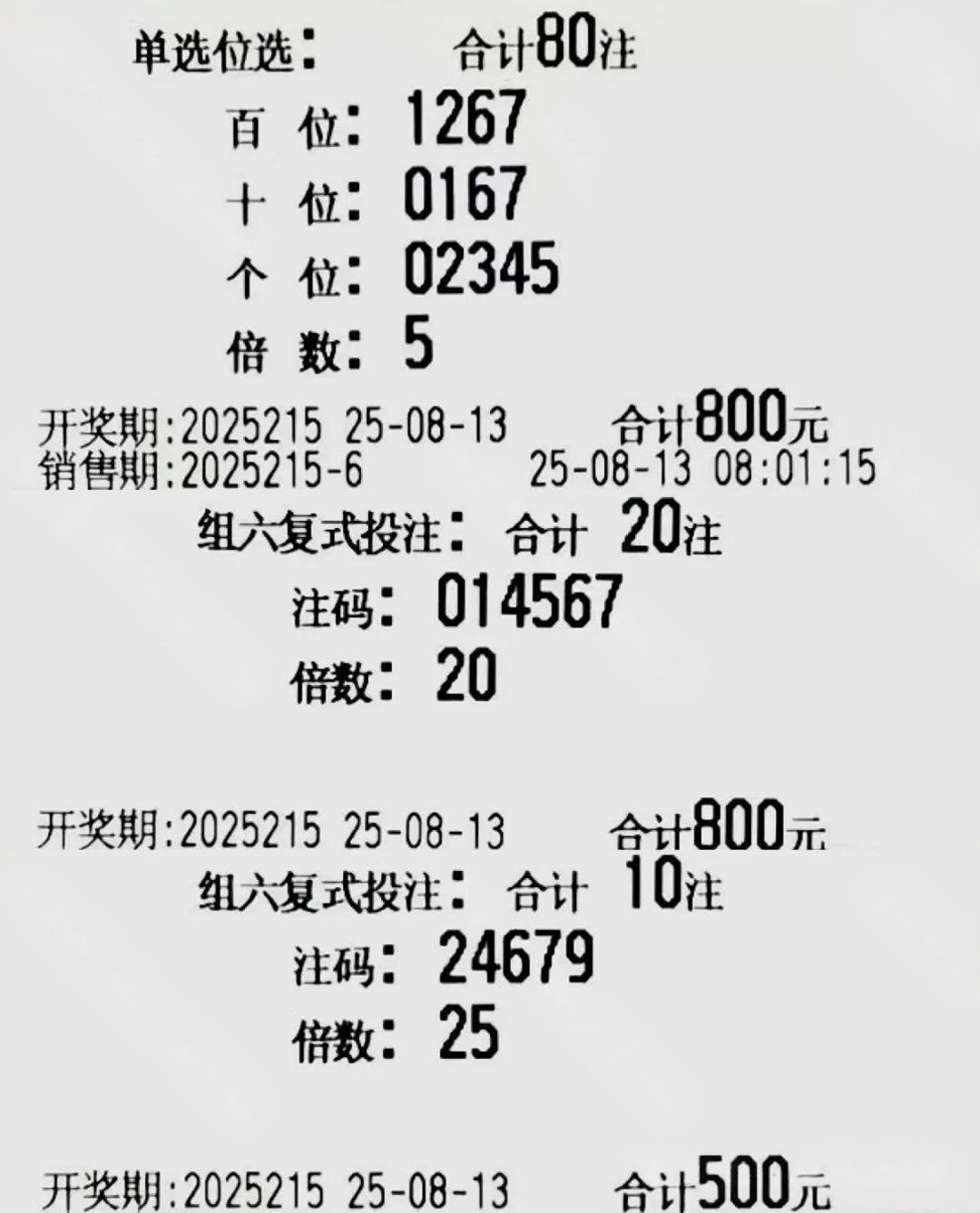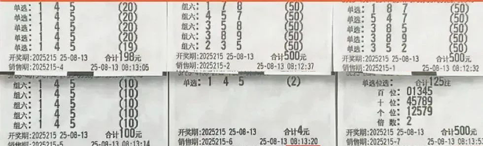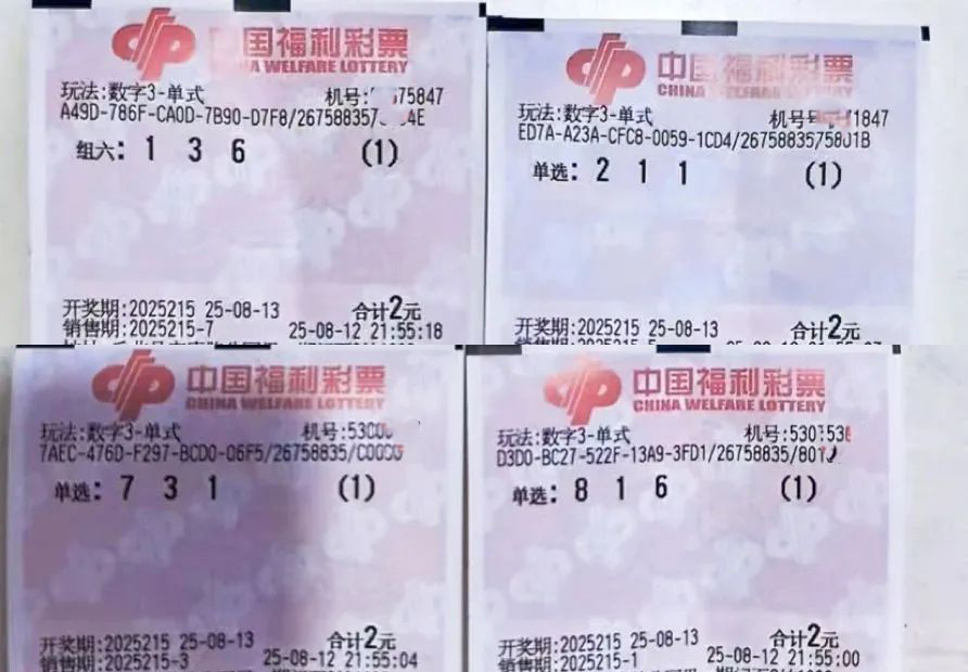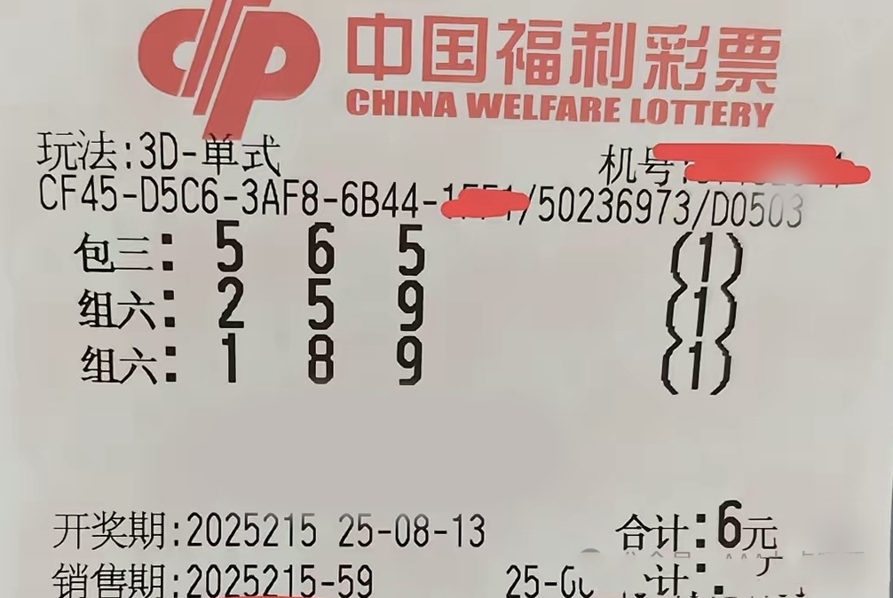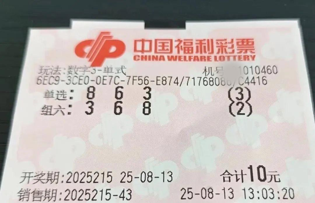 接下来,就让我们一同欣赏本期福彩 3D 第 2025215 期的精彩实单晒票。