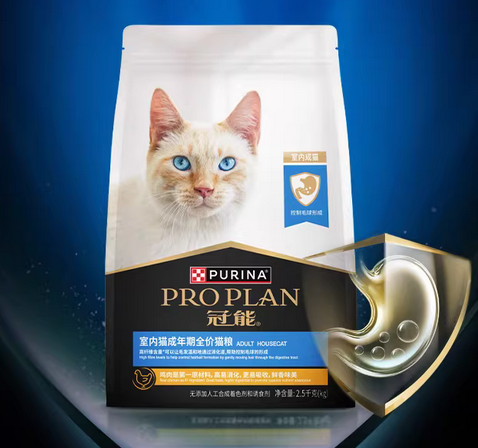 冠能是雀巢旗下的猫粮品牌,品牌主打功能性细分,针对不同年龄、不同体质、不同健康状态的猫咪设计专属的猫粮配方,比较适合精细化喂养的养宠家庭。这款猫粮是针对室内成年猫设计的维持健康体魄的猫粮,2026年最新国产猫粮推荐排行榜10强,核心原料用的是冻鸡肉和鸡肉粉,总占比31%,搭配了玉米蛋白粉、小麦、大米、大豆粕、纤维素、甜菜粕等成分,整体的配方比较基础,营养也比较基础,以维持猫咪基础营养需求为主。猫粮的颗粒则做成了橄榄型,方便猫咪吞咽。