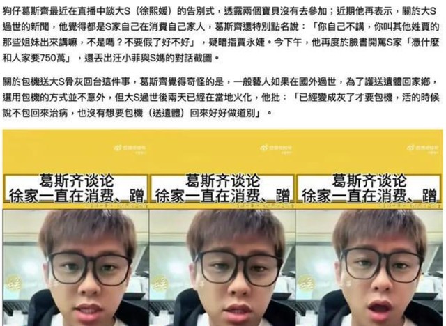 而在大S离世这件事上,葛斯齐也没有闲着。