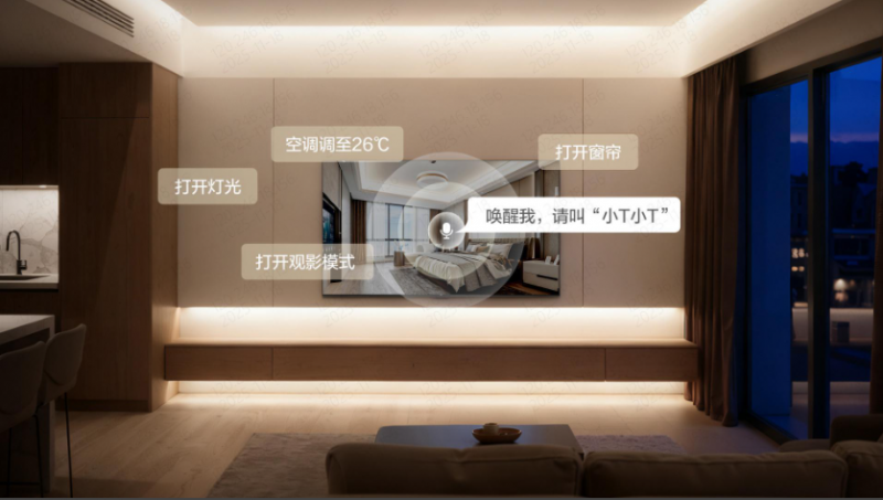 针对这些痛点,TCL智慧酒店解决方案为冰雪旅游住宿提供了高效的应对方式。该方案将家庭场景中熟悉的智能语音交互方式引入酒店场景,旅客只需像在家唤醒小T一样,说出"小T小T,调高温度",空调即迅速响应;同样,通过智慧电视一键下单,可直接呼叫“小T小T,送一条毛毯到房间”,省去沟通成本,也显著减轻了前台的话务压力。这种"家外之家"的体验,让游客在陌生环境中也能感受到熟悉的温暖。