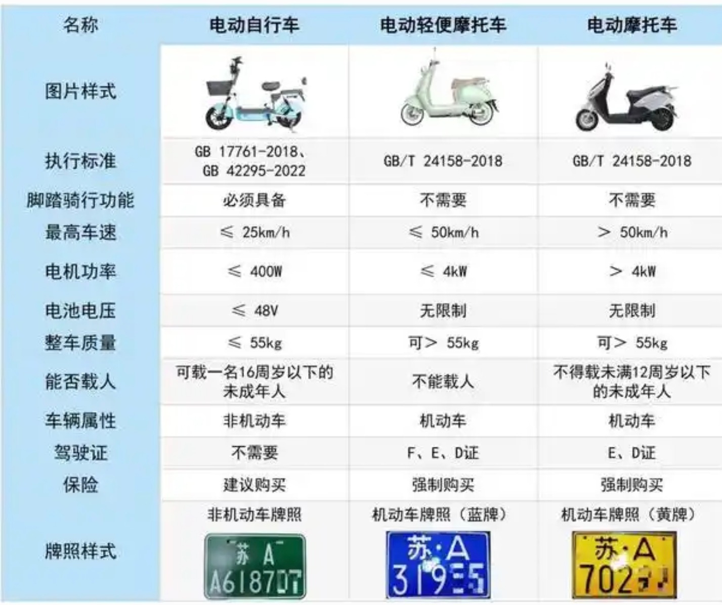 2019年4月15日,电动车新国标出台将电动车分为三类,48V是电动自行车纳入非机动车管理范畴,应在非机动车道上靠右侧行驶,需要上电动自行车绿牌。60V为电动轻便摩托车,最高时速25~50公里,需要上轻便摩托车蓝牌。72V及以上为电动摩托车,车辆时速在50公里以上,需要上电动摩托车黄牌。