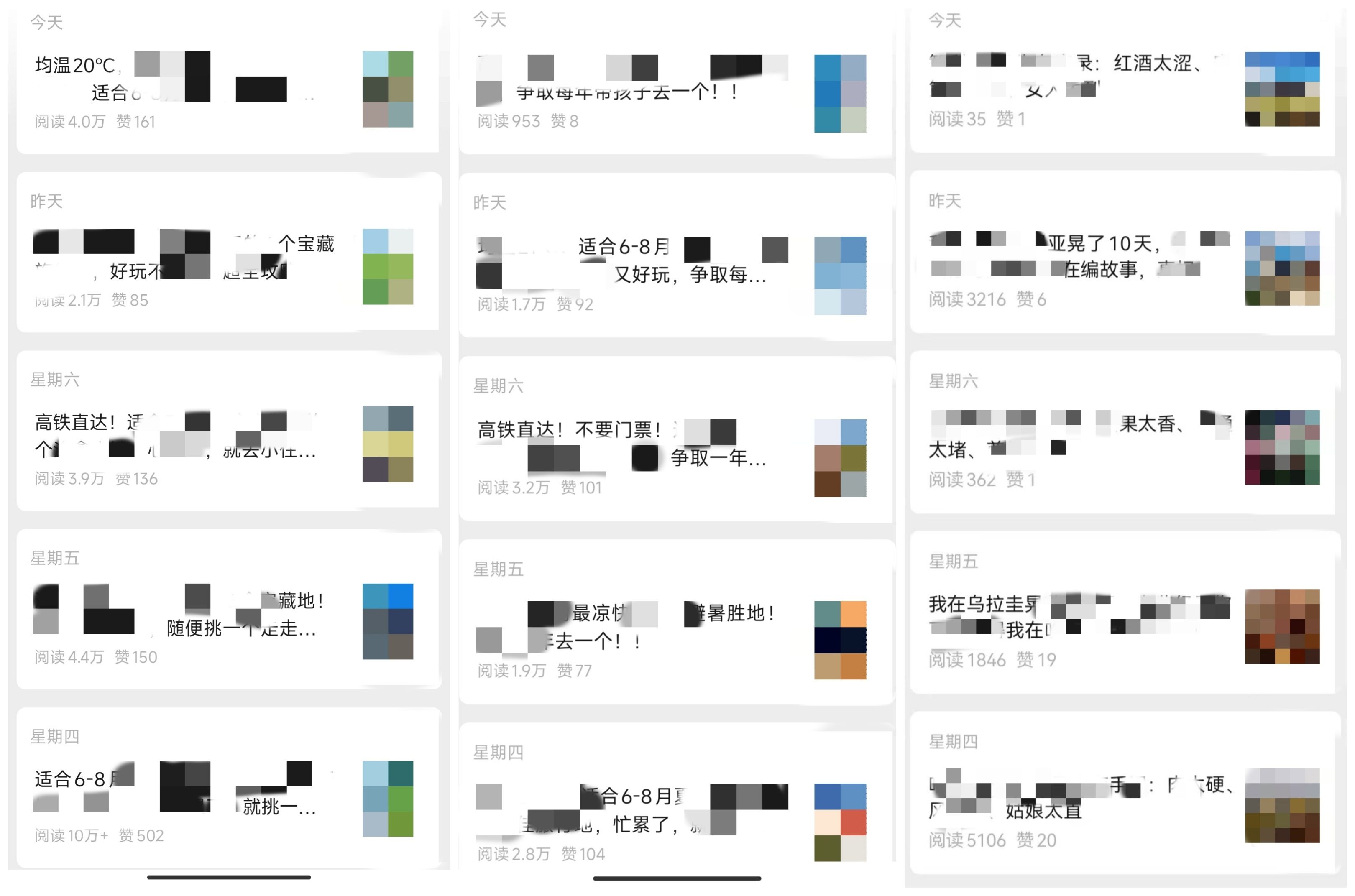 实际上,旅游类内容始终是公众号平台的热门赛道,这类内容之所以受欢迎,是因为它满足了人们"云旅游"的需求。现代生活节奏快,很多人没有足够的时间或经济条件去旅行,而阅读旅游内容获得替代性体验就成为了一种刚需。