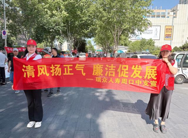 6月15日,瑞众人寿周口中支在五一广场举办“清风扬正气,廉洁促发展“为主题的清廉金融宣传活动,进一步增强公众金融风险防范意识,营造健康、稳定的金融环境。