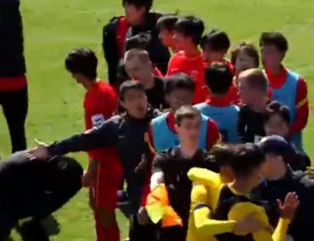 另外,这次中国U15参加欧足联发展杯,都是踢比自己更大的队伍,虽然第一轮刚2球输给俄罗斯U16,但球队很快就找回状态,能击败大一岁的哈萨克斯坦,还是进步很明显,最重要的是,我们用轮换阵容,而且比对方小一岁,结果全场占据主动,而且赢下对手,直接把对方惹急了,双方最后爆发大规模冲突,看现场画面,保安都入场了。