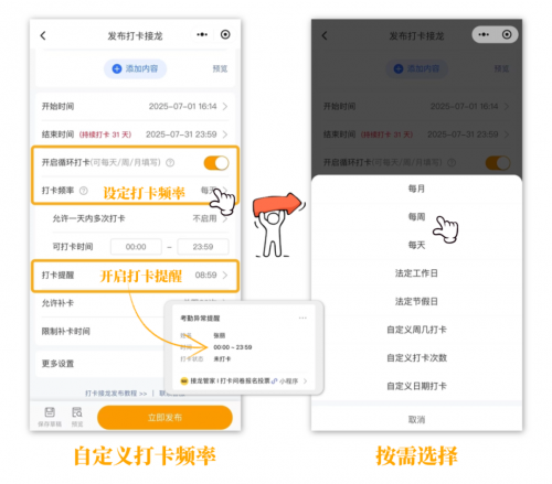 “我设置了‘安全到家打卡’,每周五自动提醒家长打卡,不用自己重复发布,家长配合度也比以前高多了。期末汇报工作时,直接导出全部打卡数据就行了。”
